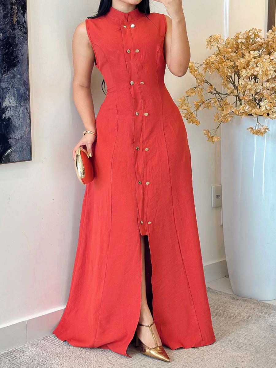 Button Up Sleeveless Elastic Waist Dress